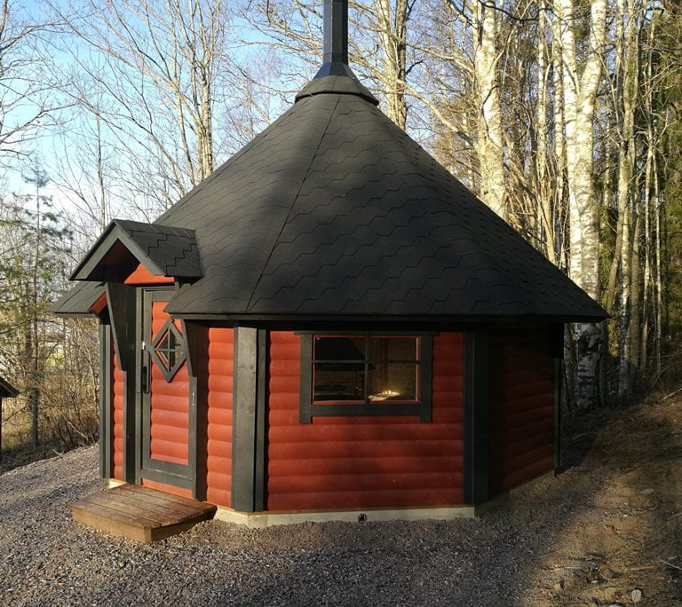 2019 vuoden lopulla tehtiin Kirkkonummelle tällainen kaunotar. Teimme työt maatöistä lähtien ja kota sai vierelleen vielä huussin ekovessalla. Tässä kodassa kehitystyö vietiin huippuunsa, ja siinä se tänäkin päivänä on. Muistetaan silti, että kehitys ei lopu, sillä jokainen on yksilönsä ja omien käyttäjiensä näköinen.